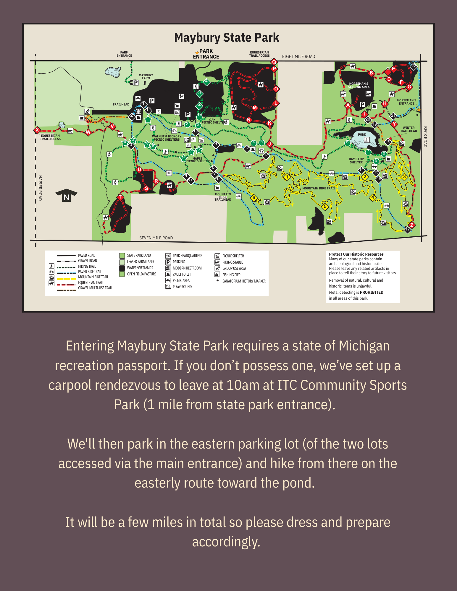 Please join us for a fun day of outdoor hiking at Maybury State Park.
